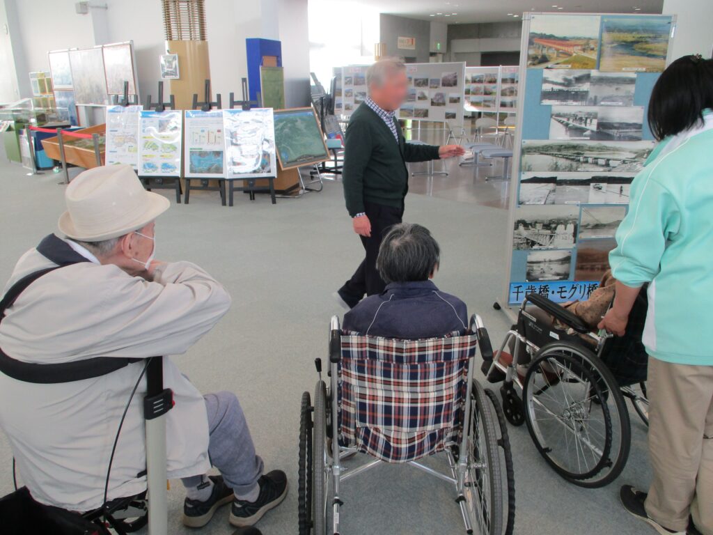 春のドライブレクとして4月21日に北上川学習交流館あいぽーとへ出かけてきました。当日は風が強かったですが、館内見学では「職員の方からのお話を聞くことができ、嬉しかった」とのお言葉をいただきました。