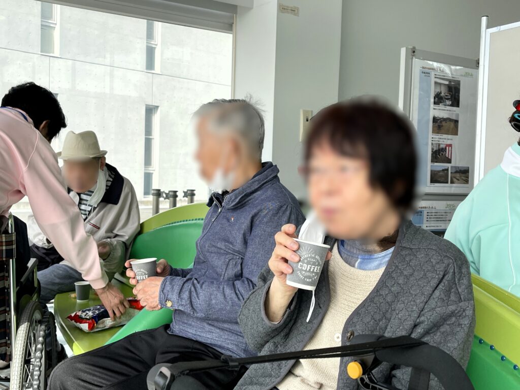 普段とは違った環境でのおやつタイムに、入居者様も笑顔で談笑する様子が多く見られました。